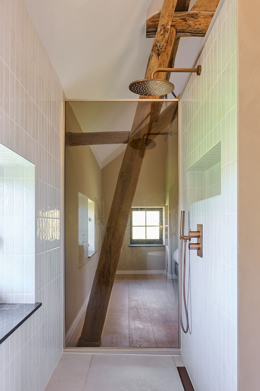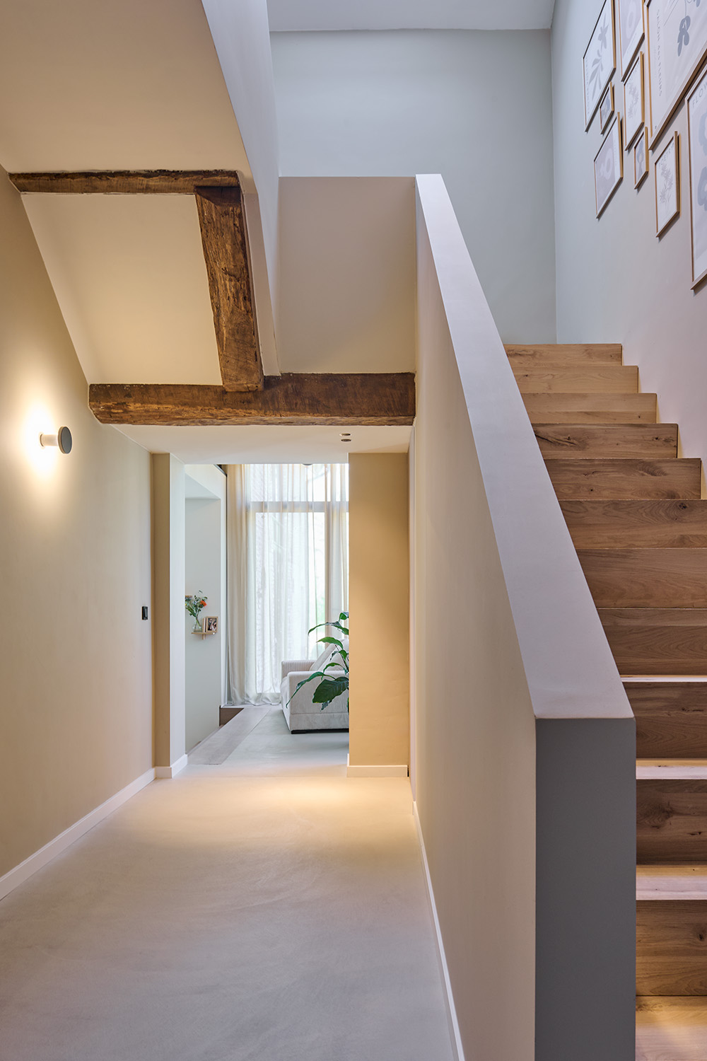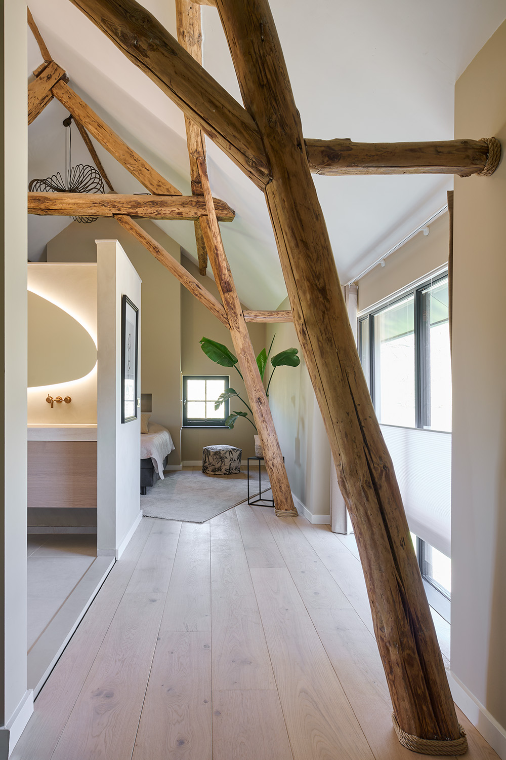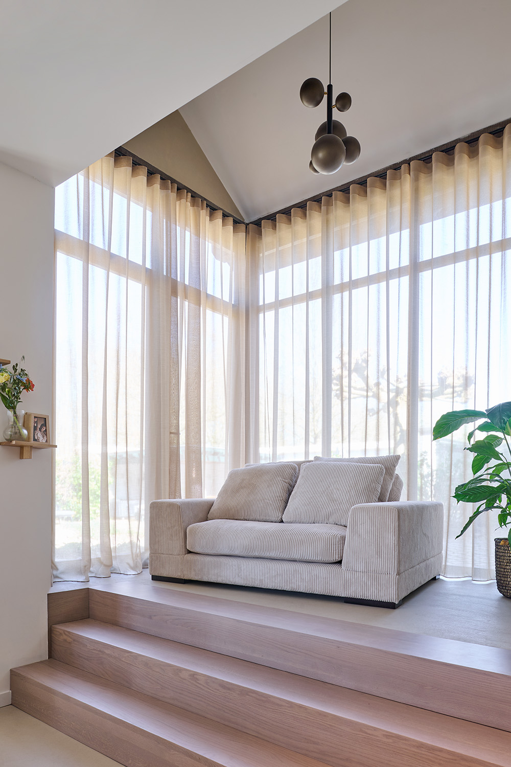 Wat ooit een traditionele boerderijwoning was, is na een grondige verbouwing uitgegroeid tot een warme, eigentijdse leefomgeving. De oorspronkelijke charme is gebleven, maar het geheel voelt nu licht, ruim en modern aan, met behoud van karakter. Door te werken met natuurlijke materialen en zachte, aardse tinten krijgt de woning een rustgevende sfeer.